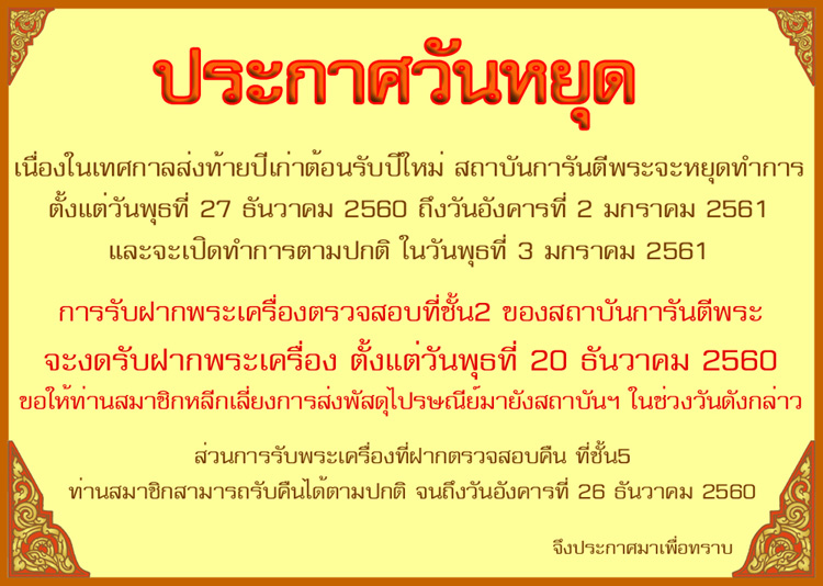 ประกาศวันหยุดเทศกาลวันปีใหม่ ประจำปี2561