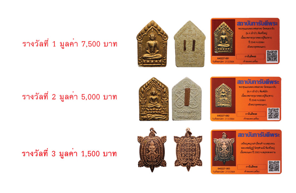 - เพื่อแทนคำขอบคุณนี้ ทางเว็บไซต์ฯ ขอมอบพระเครื่องพร้อมบัตรรับรอง QR Code จำนวน 3 รางวัลประจำเดือน มี.ค. 64 นี้ให้กับท่านสมาชิกฯ โดยทางเว็บไซต์ฯจะจับสลากจากรายชื่อท่านสมาชิกพัฒนาเว็บไซต์ฯทุกท่าน ในวันเสาร์ที่ 6 มีนาคม 64 เวลา 16.00 น. และจะประกาศรายชื่อผู้ได้รับรางวัล ที่หน้าเว็บไซต์ฯในวันจันทร์ที่ 8 มีนาคม 2564 โดยท่านสมาชิกสามารถรับรางวัลได้ที่สถาบันการันตีพระ ชั้น 5 หรือ แจ้งให้จัดส่งทางไปรษณีย์ได้ทางไลน์แอดที่ @g-pra.payment (24 ชั่วโมง ) หรือโทรแจ้งที่เบอร์โทร 02-551-2086 ( ค่าจัดส่ง 100 บาท )