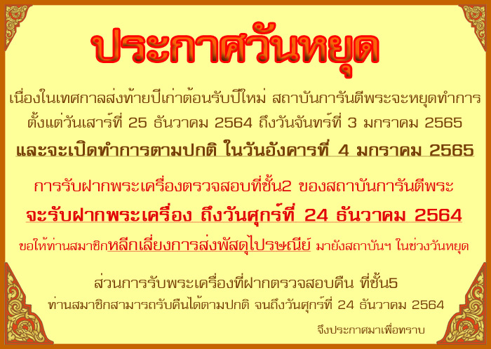 ประกาศวันหยุดเทศกาลวันปีใหม่ ประจำปี2565