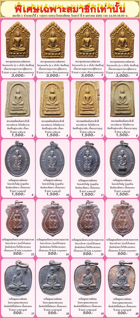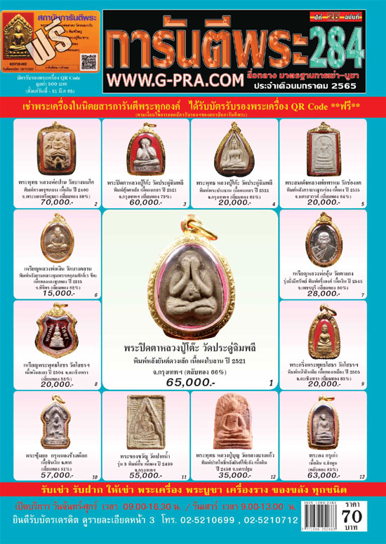 *** ในหน้า 2 ฉบับที่ 284 ประจำเดือนมกราคม 2565 สมาชิกนิตยสารการันตีพระ และสมาชิกพัฒนาเว็บไซต์ฯ สามารถโทรจองได้ในวัน *** เสาร์ที่ 8 มกราคม 2565 เวลา 14.00-16.00 น. ***