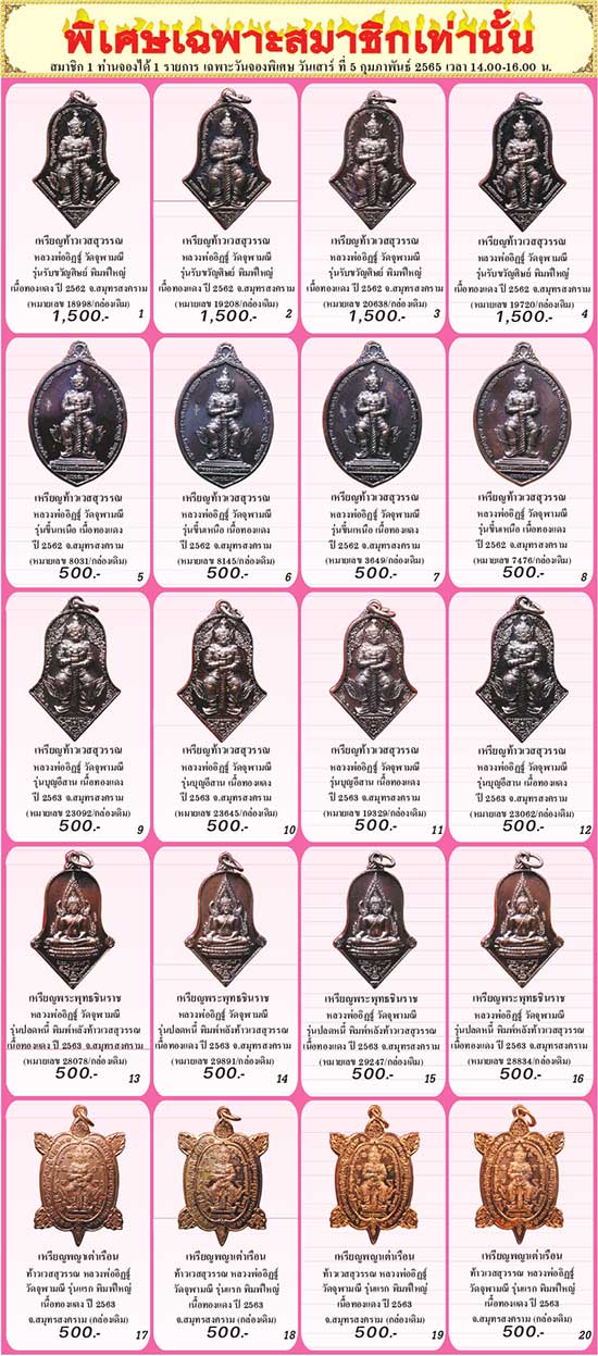 *** ในหน้า 2 ฉบับที่ 285 ประจำเดือนกุมภาพันธ์ 2565 สมาชิกนิตยสารการันตีพระ และสมาชิกพัฒนาเว็บไซต์ฯ สามารถโทรจองได้ในวัน *** เสาร์ที่ 5 กุมภาพันธ์ 2565 เวลา 14.00-16.00 น. ***