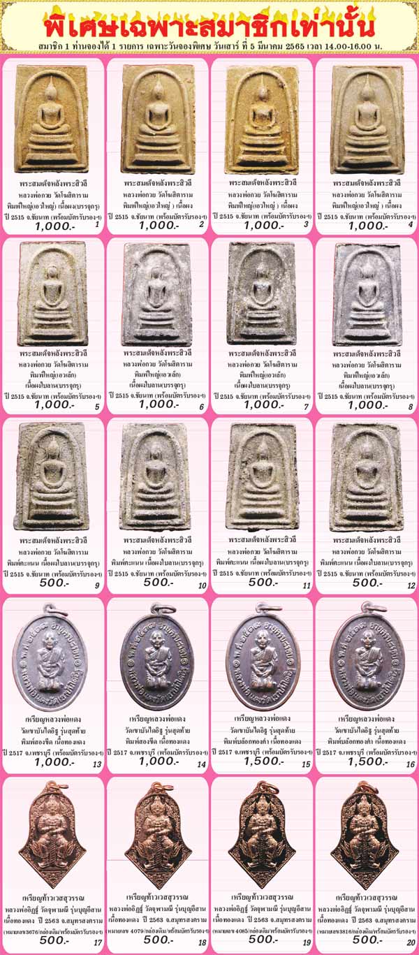 *** ในหน้า 2 ฉบับที่ 286 ประจำเดือนมีนาคม 2565 สมาชิกนิตยสารการันตีพระ และสมาชิกพัฒนาเว็บไซต์ฯ สามารถโทรจองได้ในวัน *** เสาร์ที่ 5 มีนาคม 2565 เวลา 14.00-16.00 น. ***
