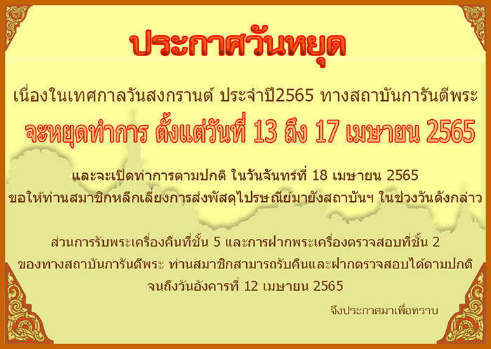 ทราบประกาศวันหยุดแล้วครับ (เทศกาลปีใหม่ไทย2565ขอให้มีความสุขกันมากมาก สุขภาพแข็งแรงสมบูรณ์ถ้วนหน้าครับ)ขอบคุณครับ