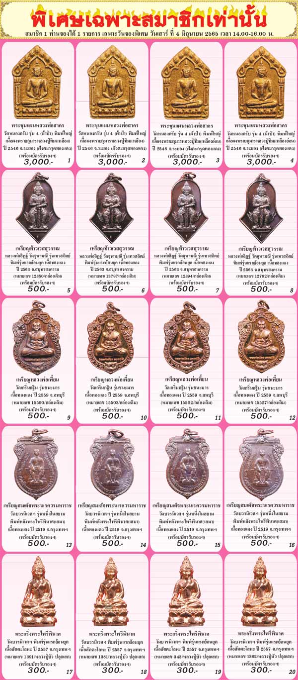 *** ในหน้า 2 ฉบับที่ 289 ประจำเดือนมิถุนายน 2565 สมาชิกนิตยสารการันตีพระ และสมาชิกพัฒนาเว็บไซต์ฯ สามารถโทรจองได้ในวัน *** เสาร์ที่ 4 มิถุนายน 2565 เวลา 14.00-16.00 น. ***
