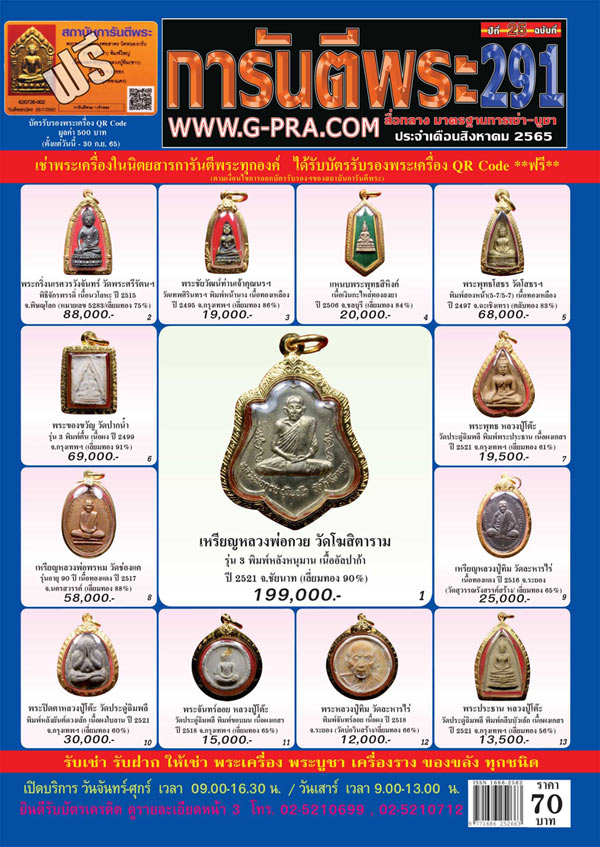 *** ในหน้า 2 ฉบับที่ 291 ประจำเดือนสิงหาคม 2565 สมาชิกนิตยสารการันตีพระ และสมาชิกพัฒนาเว็บไซต์ฯ สามารถโทรจองได้ในวัน *** เสาร์ที่ 6 สิงหาคม 2565 เวลา 14.00-16.00 น. ***