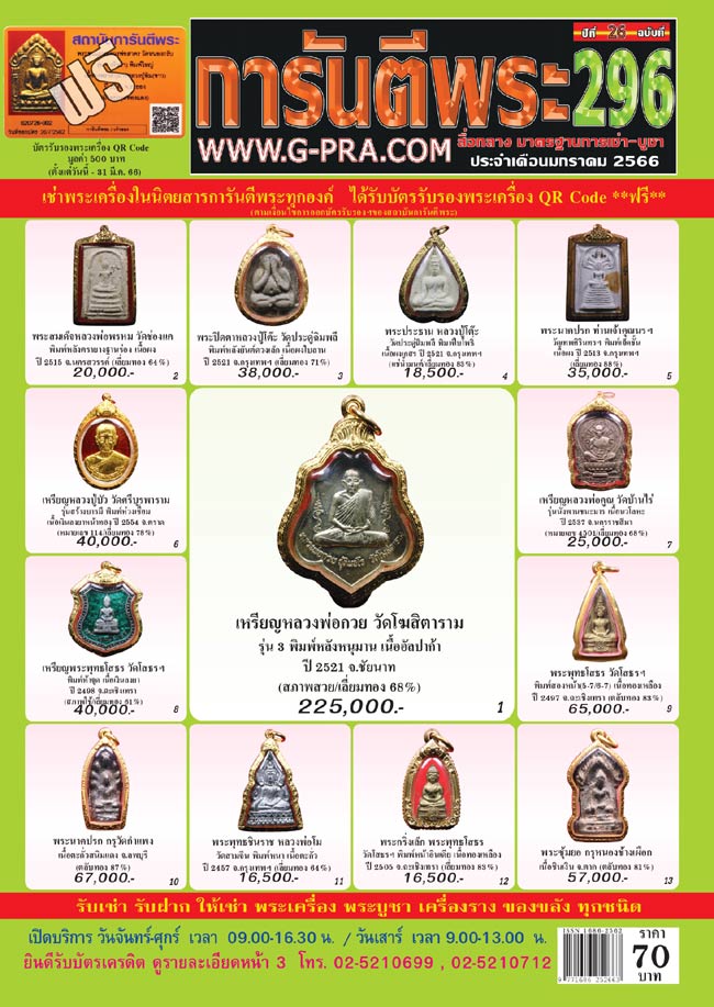 - เปิดเช่าพระเครื่องในราคา ** ถูกพิเศษ** ในหน้าพิเศษนี้ จำนวน 20 องค์ พร้อม ** บัตรรับรองพระเครื่องทุกองค์ ** ในวันเสาร์ที่ 7 มกราคม 2566 เวลา 15.00-16.00 น. ที่เบอร์โทร 085-526-8682 และ 085-992-6303 เท่านั้น