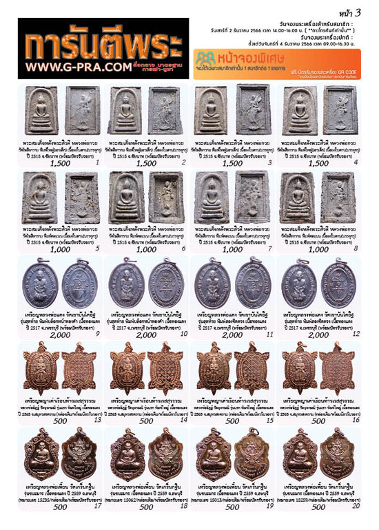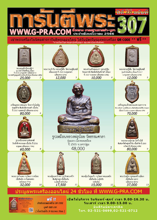 ** ในหน้า 3 ฉบับที่ 307 ประจำเดือนธันวาคม 2566 สมาชิกพัฒนาเว็บไซต์ฯ-สมาชิกนิตยสารการันตีพระออนไลน์ สามารถโทรจองได้ในวัน *** เสาร์ที่ 2 ธันวาคม 2566 เวลา 14.00-16.00 น. ***