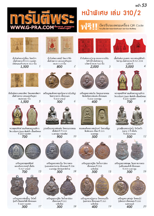 ** ขอเชิญเช่าบูชาพระเครื่องราคาถูกพิเศษ แถม บัตรรับรอง 1 ใบ ** หน้าพิเศษ 2 ( จำนวน 4 หน้า ) ของฉบับที่ 310 https://www.g-pra.com/magazine.php