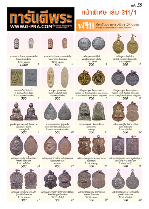 ** ขอเชิญเช่าบูชาพระเครื่องราคาถูกพิเศษ แถม บัตรรับรอง 1 ใบ ** หน้าพิเศษ 1 ( จำนวน 4 หน้า ) ของฉบับที่ 311 https://www.g-pra.com/magazine.php