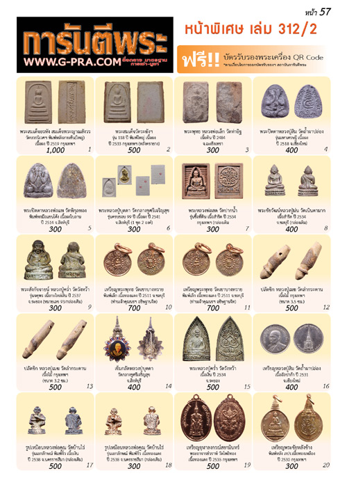 🎉🎉 ขอเชิญเช่าบูชาพระเครื่องราคาถูกพิเศษ แถม บัตรรับรอง 1 ใบ ** หน้าพิเศษ 1 ( จำนวน 4 หน้า ) ของฉบับที่ 312 https://www.g-pra.com/magazine.php