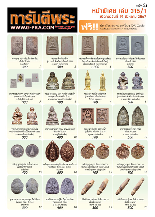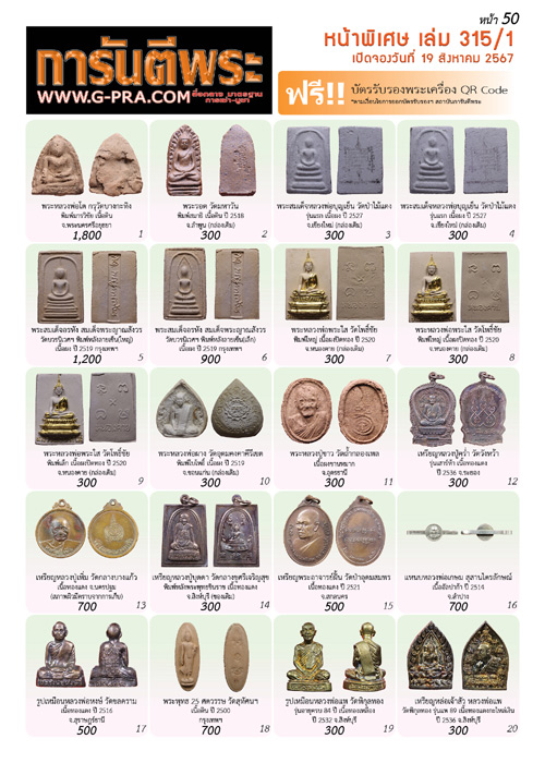 💥ขอเชิญเช่าบูชาพระเครื่องราคาถูกพิเศษ แถม บัตรรับรอง 1 ใบ ** หน้าพิเศษ 1 ( จำนวน 4 หน้า ) ของฉบับที่ 315 https://www.g-pra.com/magazine.php