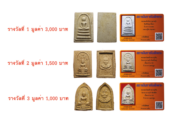- ท่านสมาชิกทั้ง 3 ท่าน สามารถขอรับรางวัลได้ที่ร้านพระเครื่องการันตีพระ ชั้น 1 หรือ โทรแจ้งให้จัดส่งทางไปรษณีย์ได้ที่เบอร์ 02-5210699 ( ค่าจัดส่ง 100 บาท )