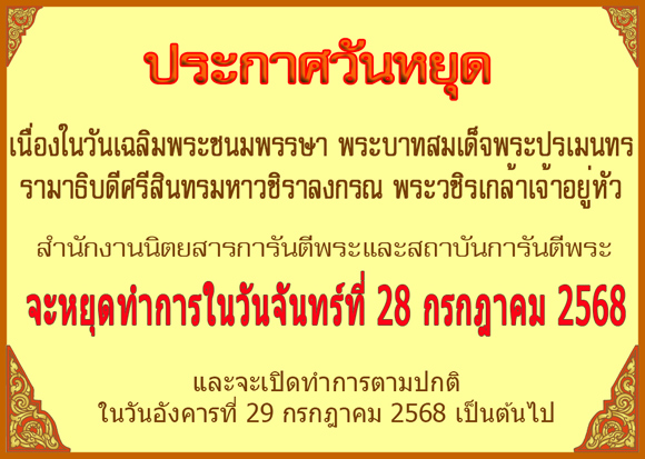 ประกาศวันหยุด 28 กรกฎาคม 2568