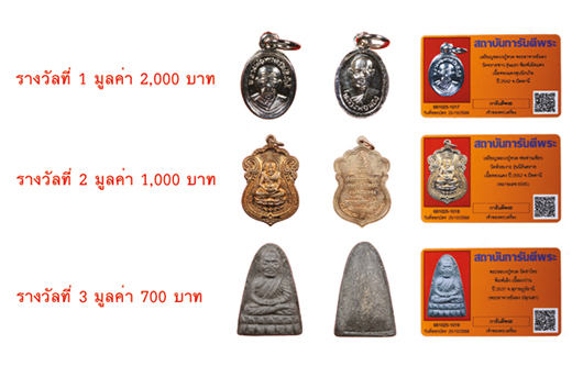 - ท่านสมาชิกทั้ง 3 ท่าน สามารถขอรับรางวัลได้ที่ร้านพระเครื่องการันตีพระ ชั้น 1 หรือ โทรแจ้งให้จัดส่งทางไปรษณีย์ได้ที่เบอร์ 02-5210699 ( ค่าจัดส่ง 150 บาท )