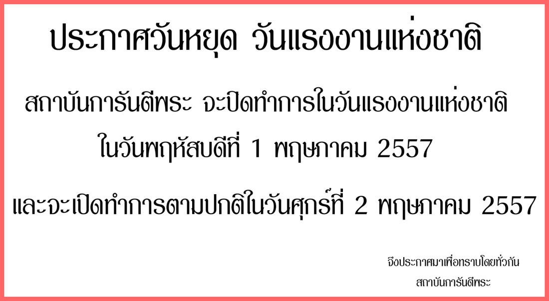ประกาศวันหยุด วันแรงงานแห่งชาติ 1 พฤษภาคม 2557