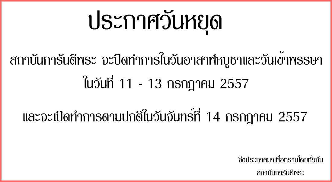 ประกาศวันหยุด วันอาสาฬหบูชาและวันเข้าพรรษา