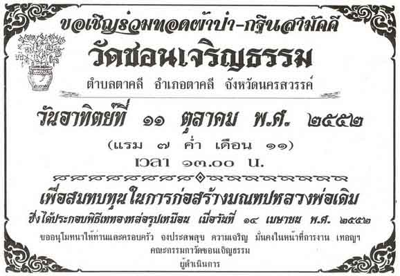เรียนคุณ tavani มีที่บิ๊กซีนครสวรรค์กับริมอุทยานสวรรค์หน้าโรงพยาบาลศรีสวรรค์ครับในบิ๊กซีขาย 2,500บาทตลาดนัดหน้าค่ายจิรประวัติก็ประมาณ2,000-3,000บาทคงเลือกดูคนผมถามบอก3,000 บาทเลยส่วนถูกที่สุดแผงหน้าโรงพยาบาลศรีสวรรค์ เมื่อวานองค์สวยๆผมซื้อมา1,200 บาทประวัติไม่แน่ชัดคนขายบอกทันก็อายๆเหมือนกันเวลาเช่ามา แต่เห็นน้องคนหนึ่งเขาเลือกไงเขาเก็บไปแล้วสององค์สัปดาห์ก่อนมาเก็บใหม่เขาก็เลือกไปอีกสององค์ แล้วเขาก็เลือกให้ผมสององค์สอนดูเส้นข้างหูไว้ก่อนเขานิยมกัน ผมก็เลยเลือกจ่ายเท่าเขาไม่งั้นแพงกว่านี้เขาจะเรียกราคากัน1,500 บาทมีคราบปรอทที่องค์ของผมเขาเอาไม่สวยขายก่อนคราบปรอทมีน้อยมากเกือบหมด เลยต่อเอาครับลองสอบถามประวัติเขาดูว่าได้มาอย่างไร ผมถามเขาบอกอยู่หัวเตียงนอนคนสร้างเลยมีตั้งหลายรุ่นเนื้อผง สองพันกว่าหมดไปแล้วเหลือรุ่นนี้รุ่นสุดท้ายที่อยู่หัวเตียง อย่าไปเชื่อเสียทีเดียวเอาแค่พอมีเก็บไว้สักองค์อย่าไปเก็บเยอะกันพลาดแต่สวยจริงๆครับ บอกตอนงานประกวดสิ้นปีจะเอามาออกกันหนังสือลงอย่างกลางๆว่านคนสร้างไว้แจกเพื่อนฝูงและพนักงานแล้วไม่ได้แจกหรือแจกบางส่วนแต่ไม่มีประวัติการสร้างยืนยัน ยังเสียดายวัดชอนเดื่อไม่เล่นองค์ละ 200บาทอย่างสวยแท้รุ่นแรกตอนออกมาเพื่อนโชว์ให้ดูยังบอกของเขาไม่ดีสักพักเชียร์กันไปมาองค์ละสามพันเลยเลยไม่มีกับเขาเลยสักองค์