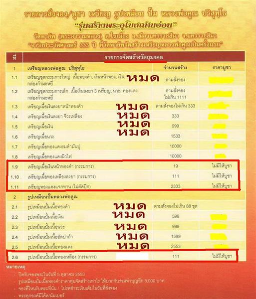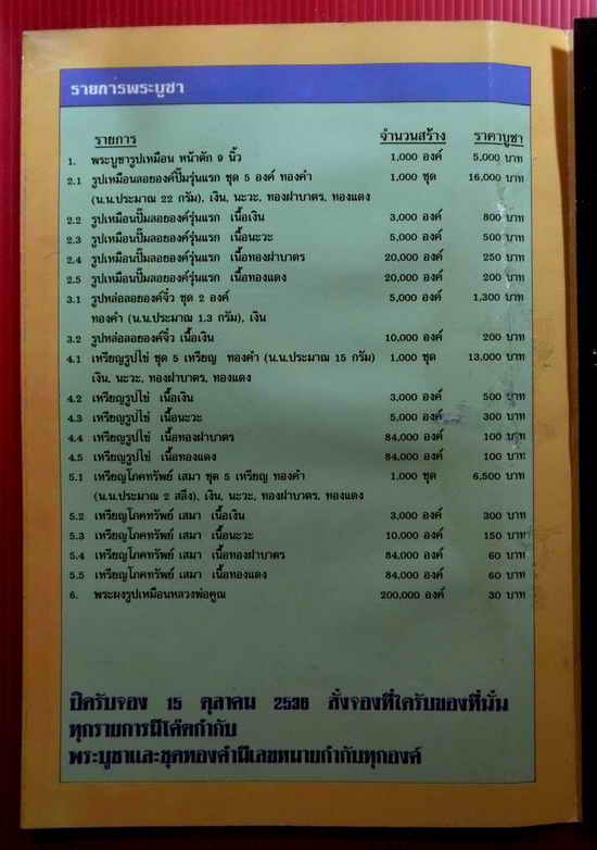 - ดังนั้นทางเว็บไซต์ฯขอให้ท่านสมาชิกโปรดระมัดระวังการจองและเช่าบูชาพระเครื่องที่ไม่มีรายการในเอกสารการขอจัดสร้างหรือในเอกสารการจองด้วยนะครับ