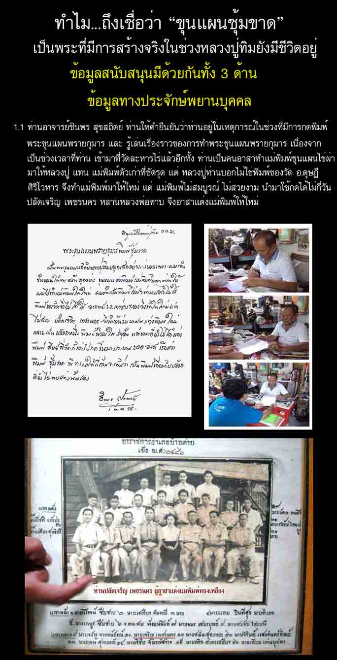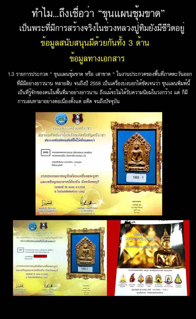 -พระขุนแผน ลป.ทิม วัดละหารไร่ พิมพ์ซุ้มขาด เนื้อผงพรายกุมาร ปี 2517 จ.ระยอง มีการเช่าบูชากันเฉพาะกลุ่ม และการเล่นหากันยังไม่เป็นมาตรฐานเดียวกัน ทางคณะที่ปรึกษาพระเครื่องฯได้ตรวจสอบข้อมูลท้้งหมดแล้ว ยังไม่สามารถสรุปข้อมูลทั้งหมดได้