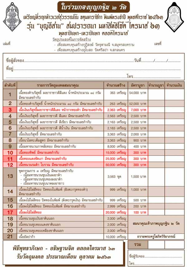 ** รับพระวันที่ 15 ตุลาคม 2563 **