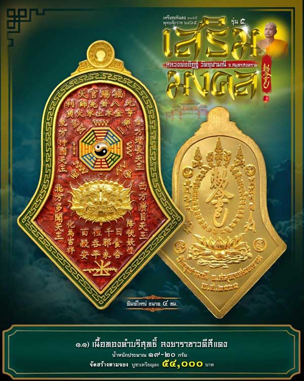 ลำดับที่ 1.1 เนื้อทองคำบริสุทธิ์ ลงยาราชาวดีสีแดง บูชา 54,000 บาท