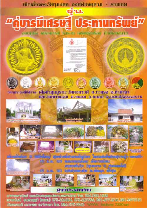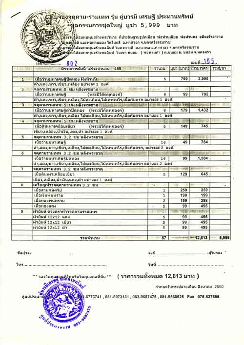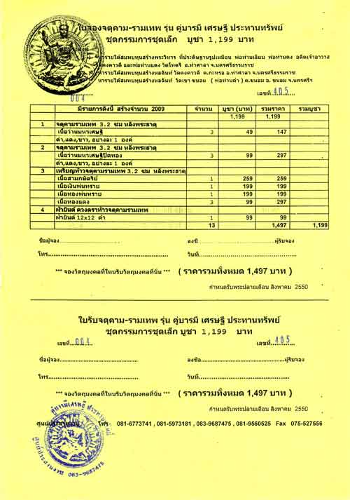 ท่านที่ประสงค์ให้จัดส่งใบจอง และพระทางไปรษณีย์ กรุณาเพิ่มค่าจัดส่งครั้งละ 50 บาท