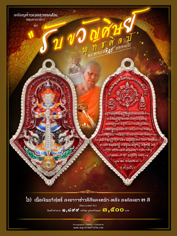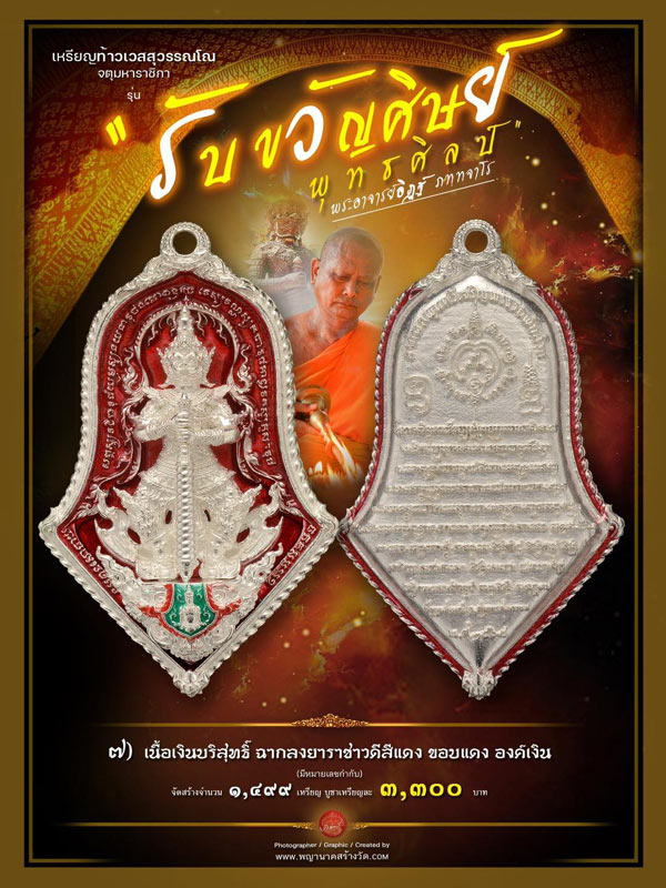 6.เนื้อเงินบริสุทธิ์ ลงยาราชาวดีสีแดงหน้า-หลัง องค์ลงยา 3สี