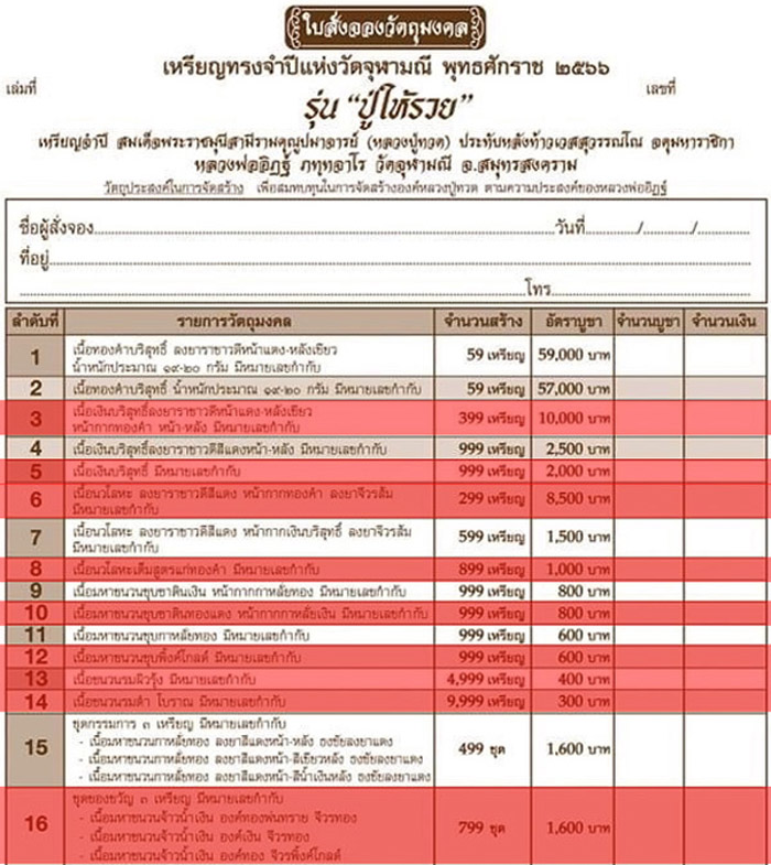 รายการที่เปิดจอง ** ตัวหนังสือสีแดง ** โดยมีรายการดังนี้