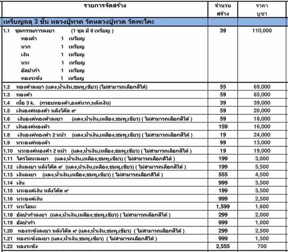 สมาชิกที่โพสต์ลำดับที่9. จองได้เนื้อนวะองค์เงิน1.16 + เนื้อนวโลหะ1.17 + เนื้อทองระฆัง1.22 = 3 เหรียญ/ 4,800 บาท