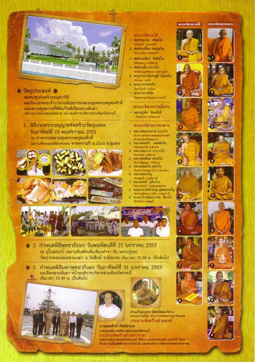 3. กำหนดพิธีมหาพุทธาภิเษก วันอาทิตย์ที่ 31 มกราคม 2553 บนเรือหลวงลันตา หน้าองค์การบริหารส่วนจังหวัดกระบี่เริ่มเวลา 15.39 น. เป็นต้นไป