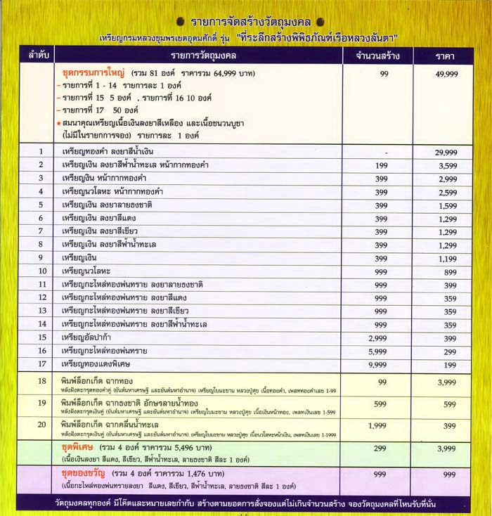 ท่านที่ประสงค์ให้จัดส่งใบจอง และพระทางไปรษณีย์ กรุณาเพิ่มค่าจัดส่งครั้งละ 50 บาท