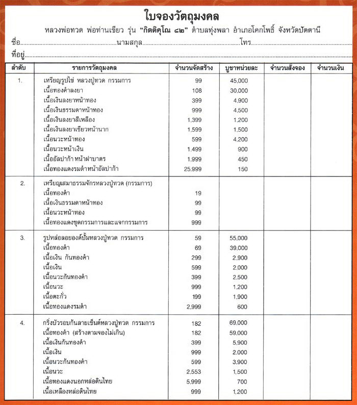 ท่านที่ประสงค์ให้จัดส่งใบจอง และพระทางไปรษณีย์ กรุณาเพิ่มค่าจัดส่งครั้งละ 50 บาท