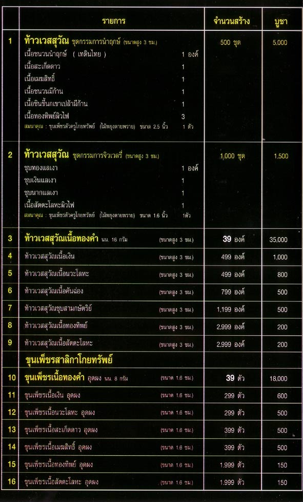 - รายการพระที่จะได้ จะเรียงตามลำดับการโพสต์จองตรงตามรายการพระ โดยเรียงลำดับ 85 รายการดังนี้