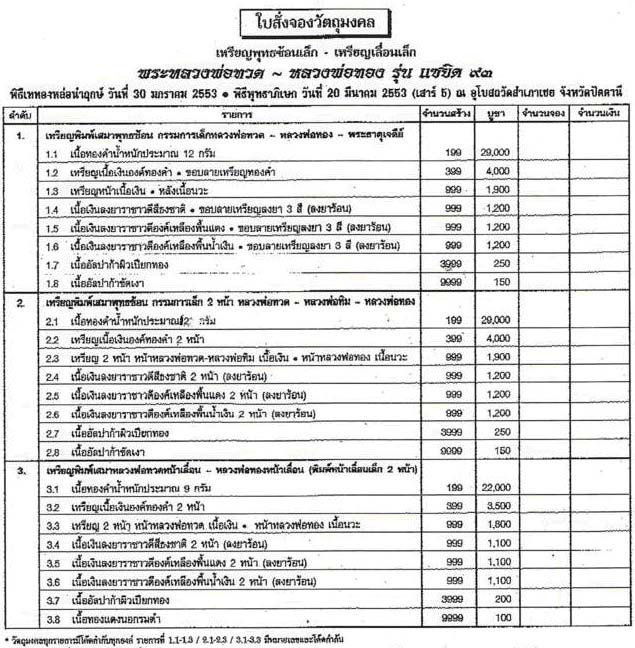 กำหนดรับวัตถุมงคลประมาณต้นเดือนเมษายน 2553
