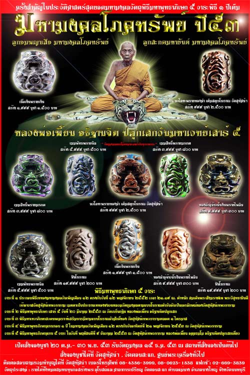 ครั้งสำคัญในประวัติศาสตร์สุดยอดมหามงคลวัตถุพิธีมหาพุทธาภิเษก 5 วาระพิธี 1 ปีเต็ม