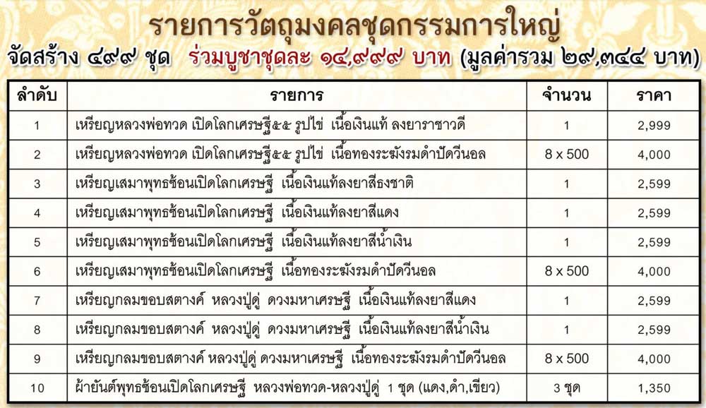 ขอเชิญร่วมสั่งจอง วัตถุมงคล รุ่น เปิดโลกเศณษฐี 55 หลวงปู่ทวด หลวงปู่ดู่