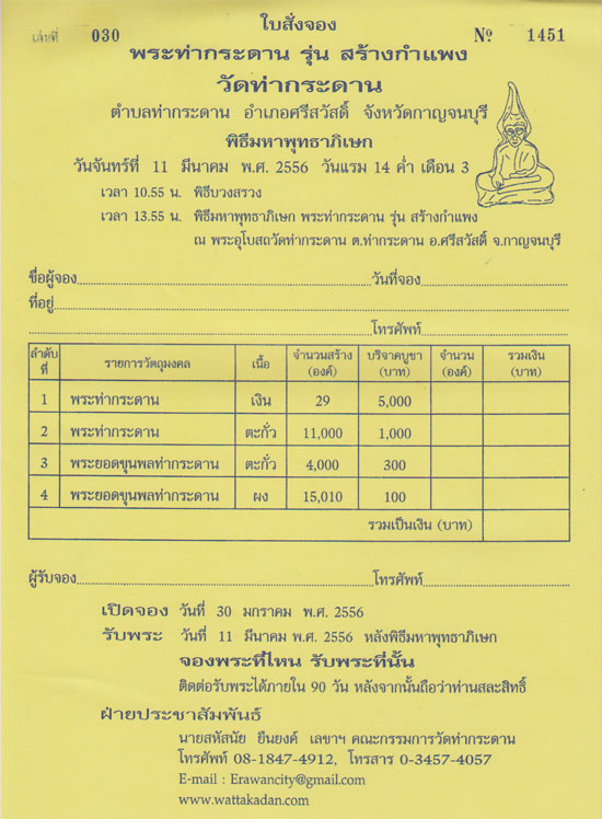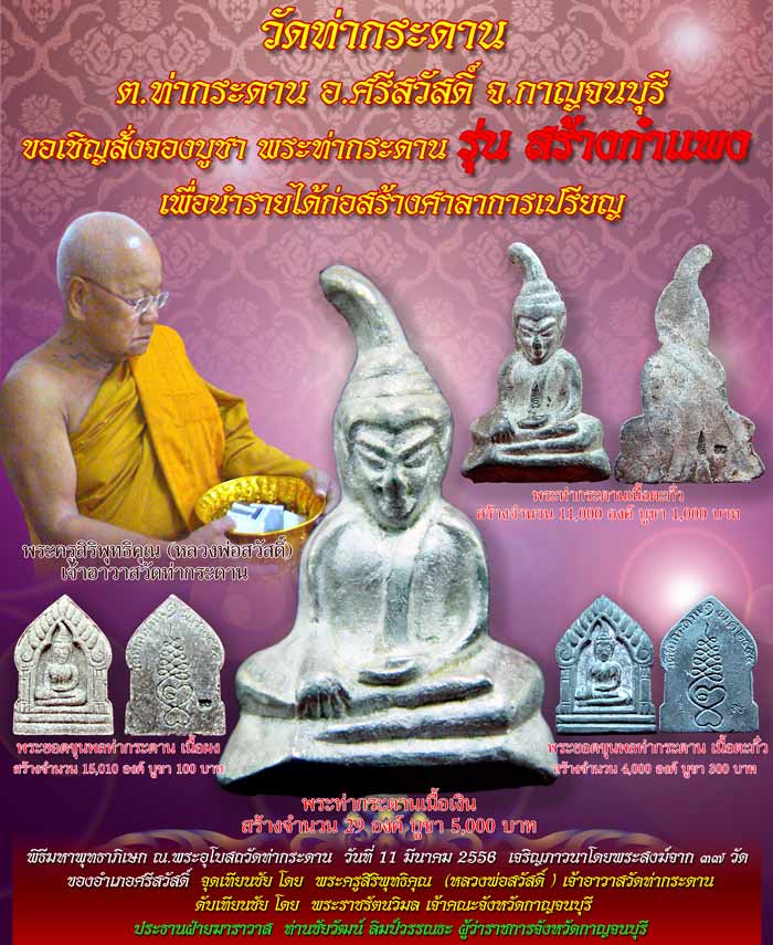 ขอเชิญร่วมสั่งจองบูชา พระท่ากระดาน รุ่นสร้างกำแพง วัดท่ากระดาน ต.ท่ากระดาน อ.ศรีสวสดิ์ จ.กาญจนบุรี