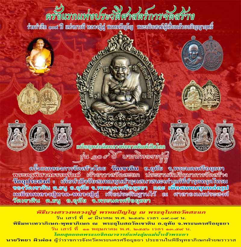ครั้งแรกของการจัดสร้างโดย วัดเขาดิน อ.อุทัย จ.พระนครศรีอยุธยา พระครูพิศาลธรรมรักษ์ เจ้าอาวาสวัดสะแก ประธานที่ปรึกษาการจัดสร้าง