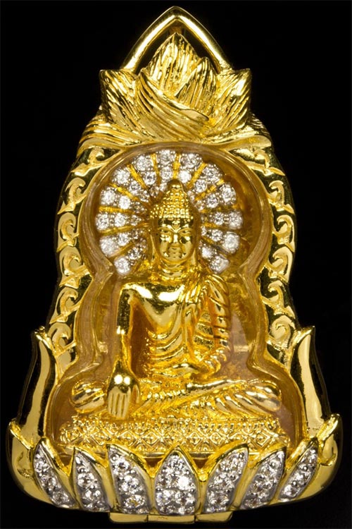 ๑.พระพุทธเมตตา เนื้อทองคำรัศมีฝังเพชรแท้(สูง ๓ ซม. หน้าตัก ๒ ซม.) พร้อมกรอบทองคำฝังเพชรแท้ จัดสร้างจำนวน ๑๙ องค์ บริจาคบูชาองค์ละ ๓๙๙,๙๙๙ บาท (หมดแล้ว)