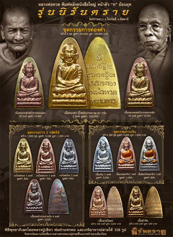 ขอเชิญร่วมสั่งจอง พระหลวงปู่ทวด พิมพ์หลังหนังสือใหญ่ หน้าตัว "ท" ย้อนยุค รุ่นนิรันตราย วัดทรายขาว จ.ปัตตานี