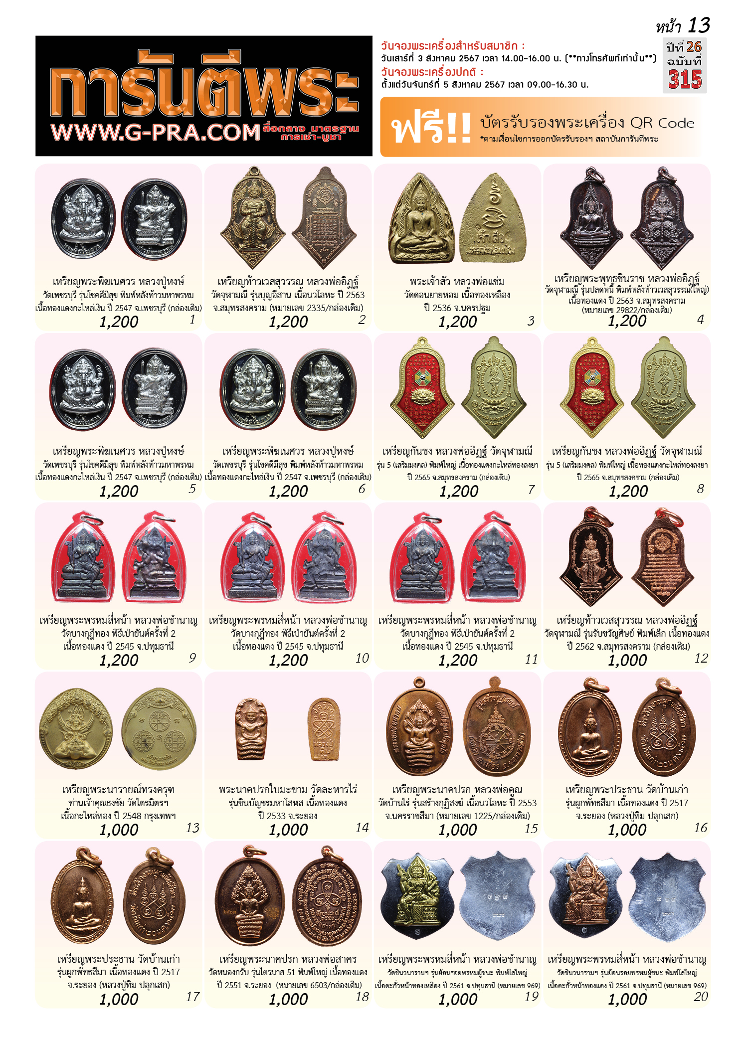 กรุณาเลือกเล่มนิตยสารการันตีพระ :