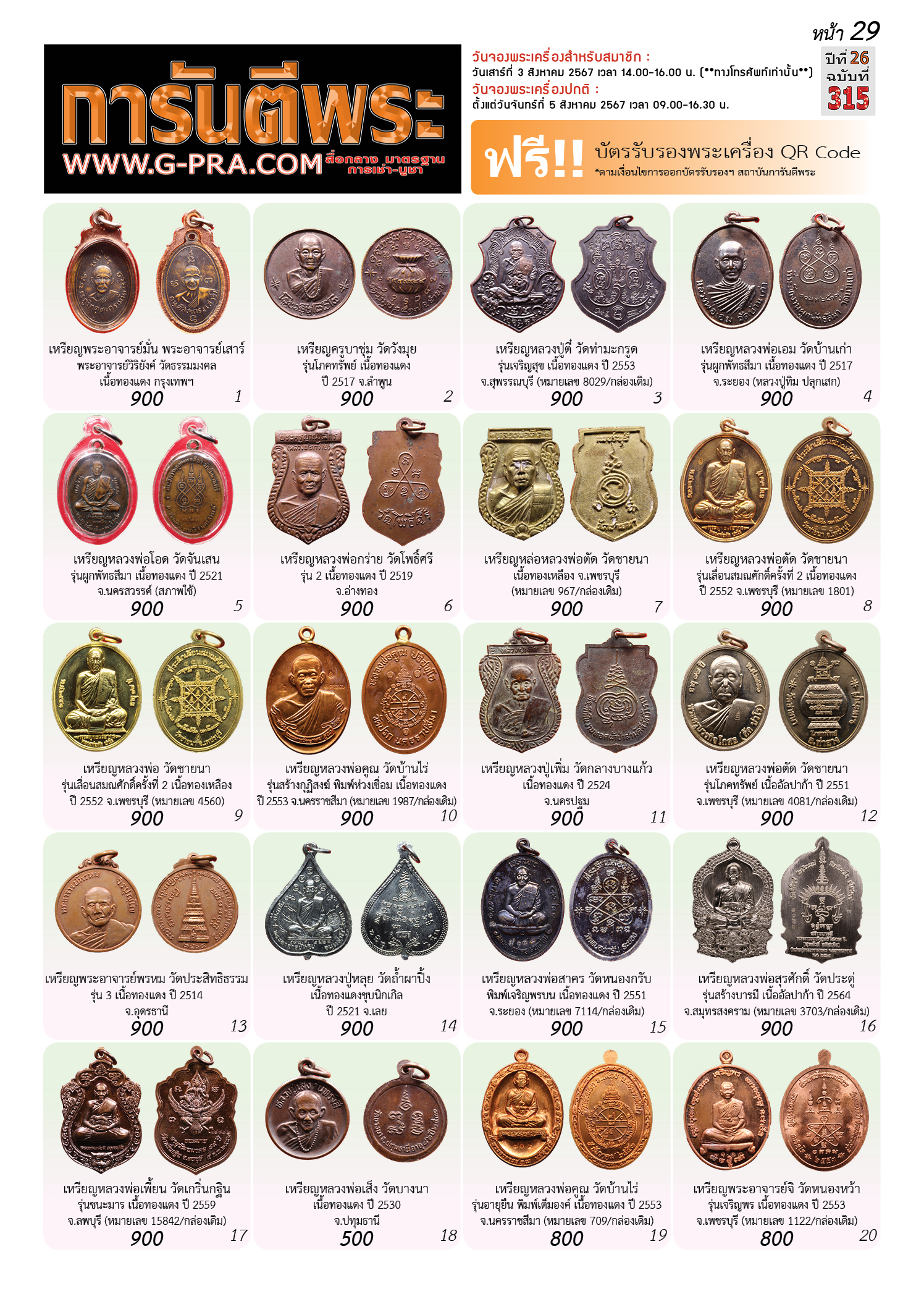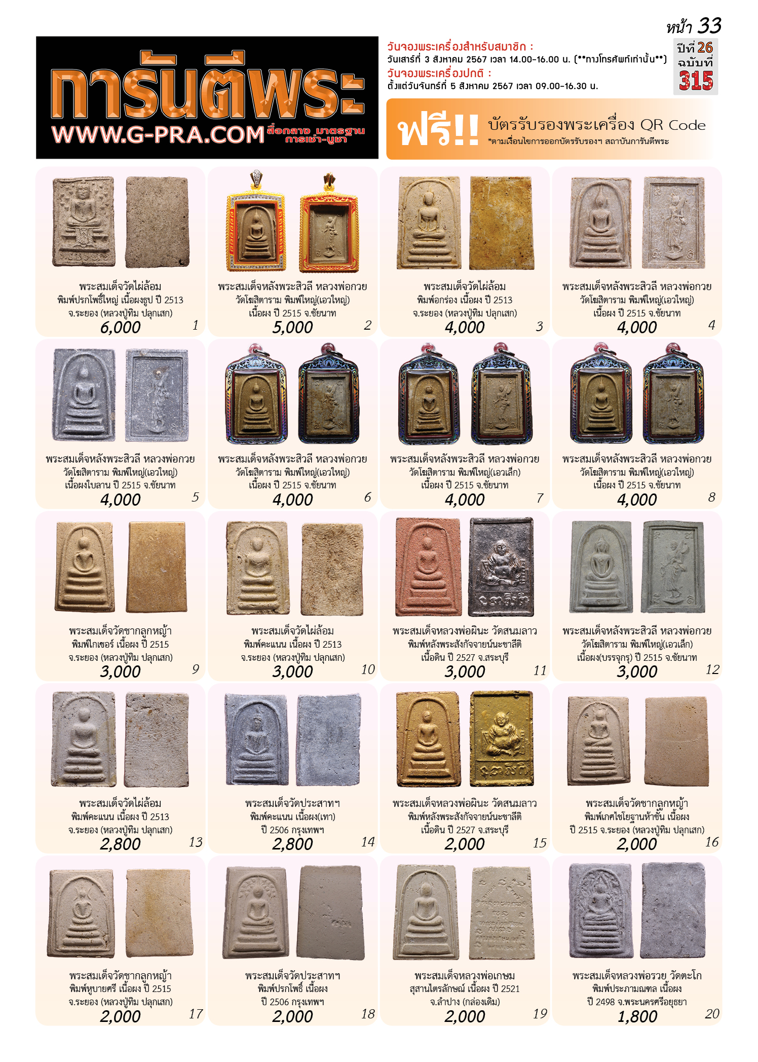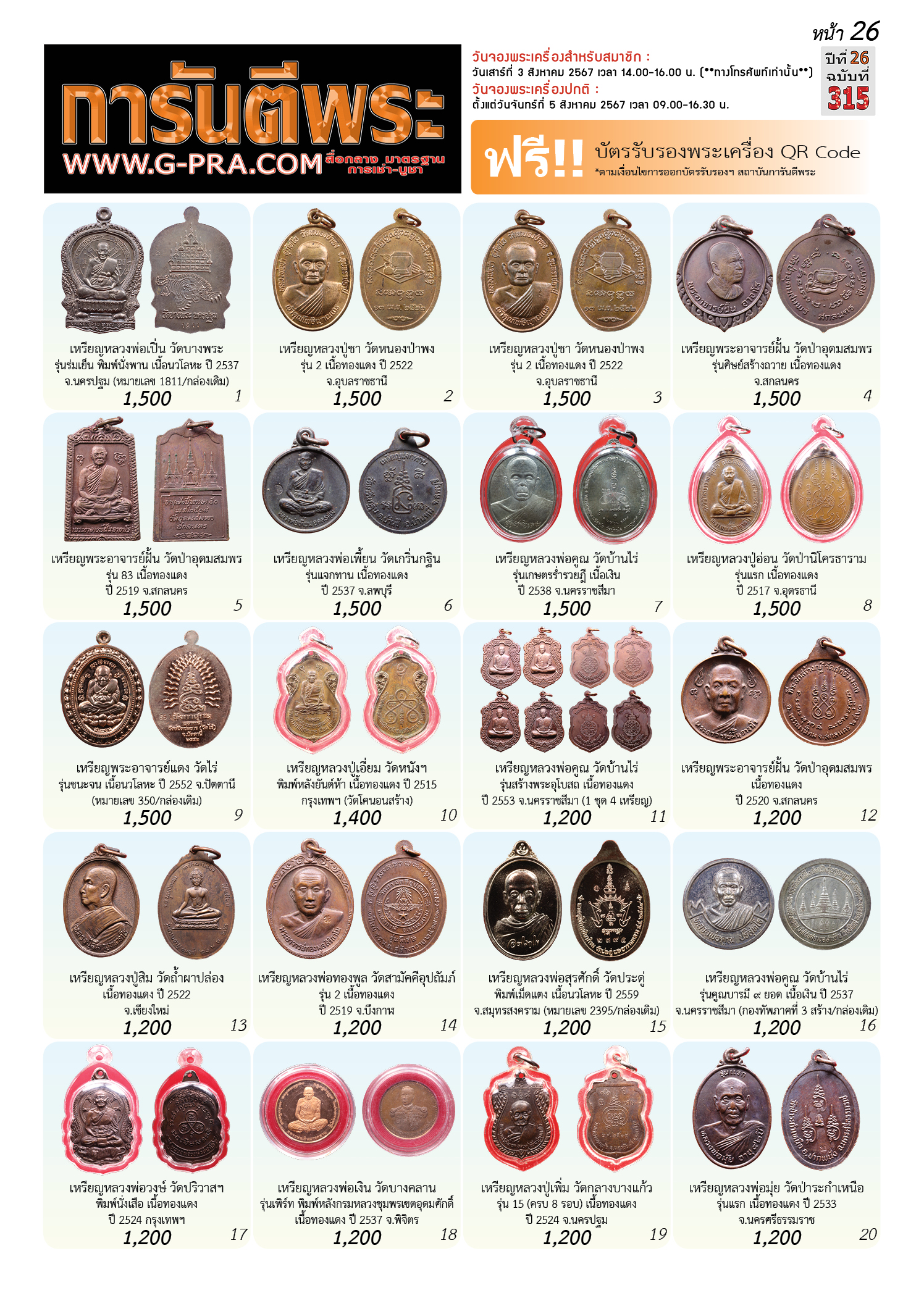 กรุณาเลือกเล่มนิตยสารการันตีพระ :