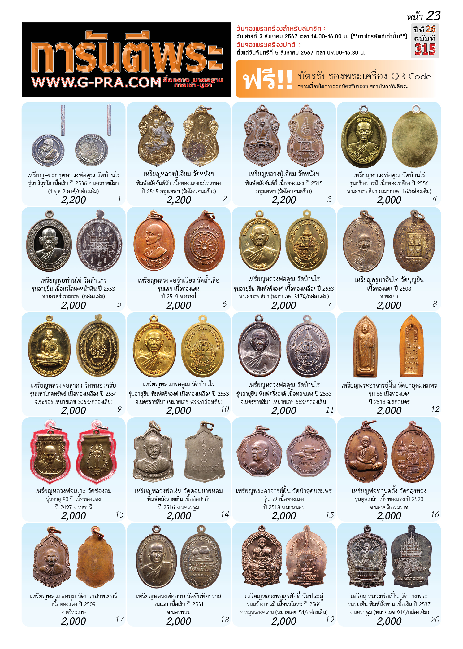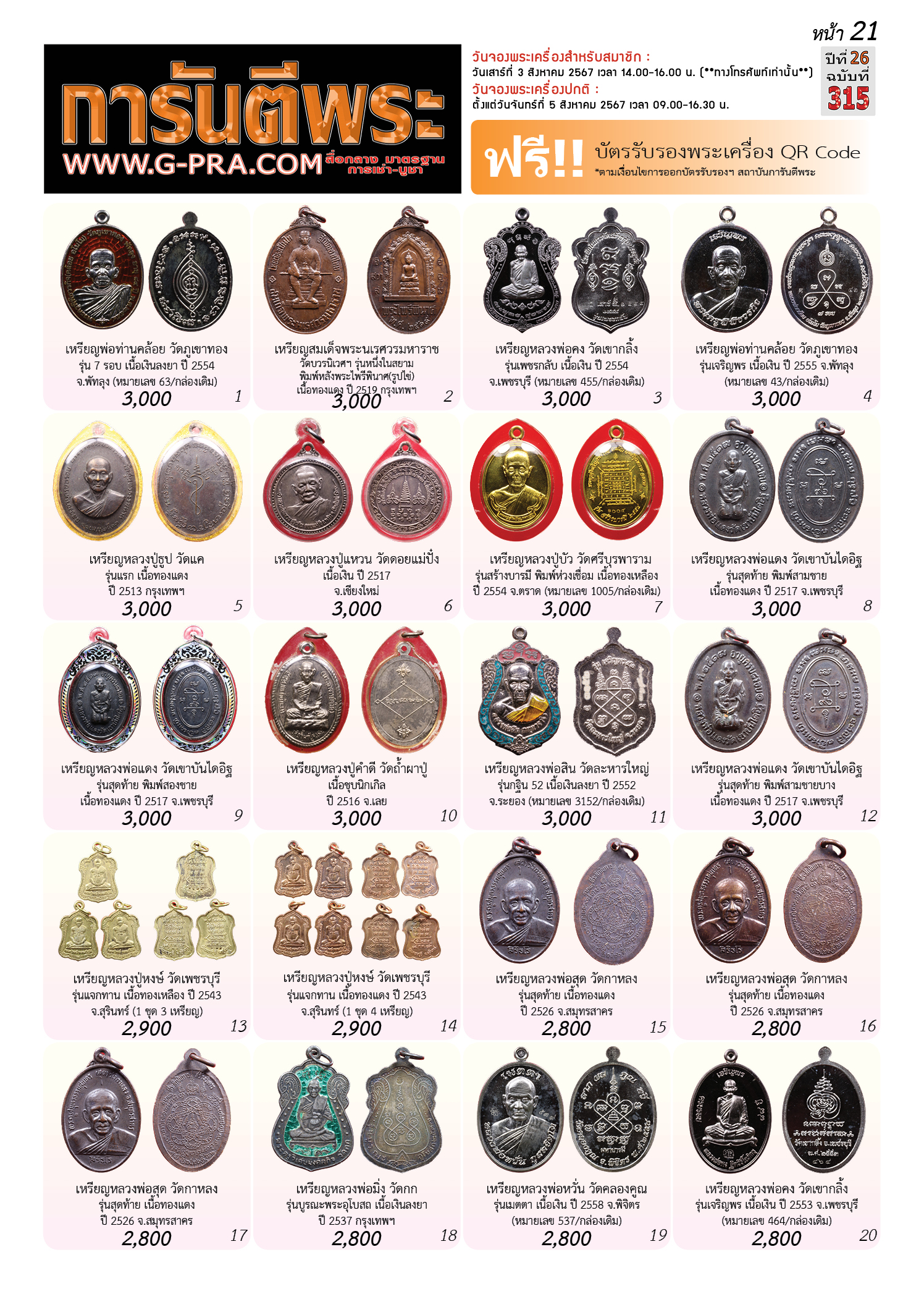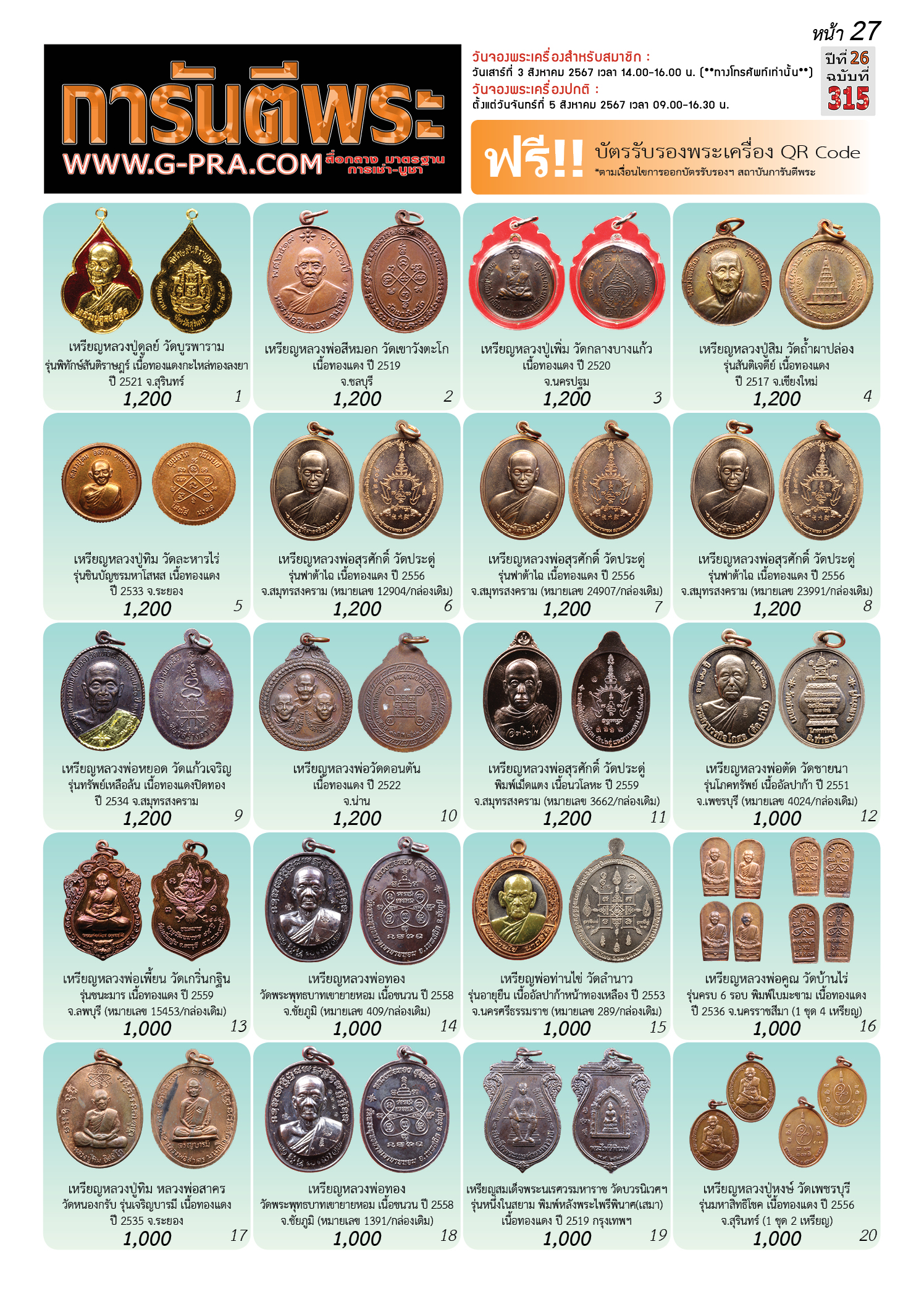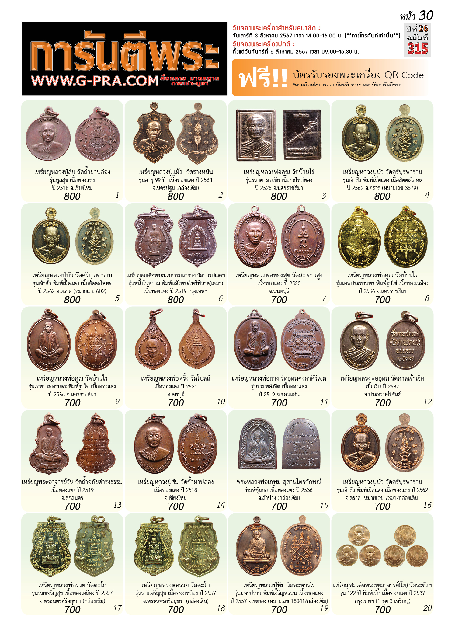 กรุณาเลือกเล่มนิตยสารการันตีพระ :