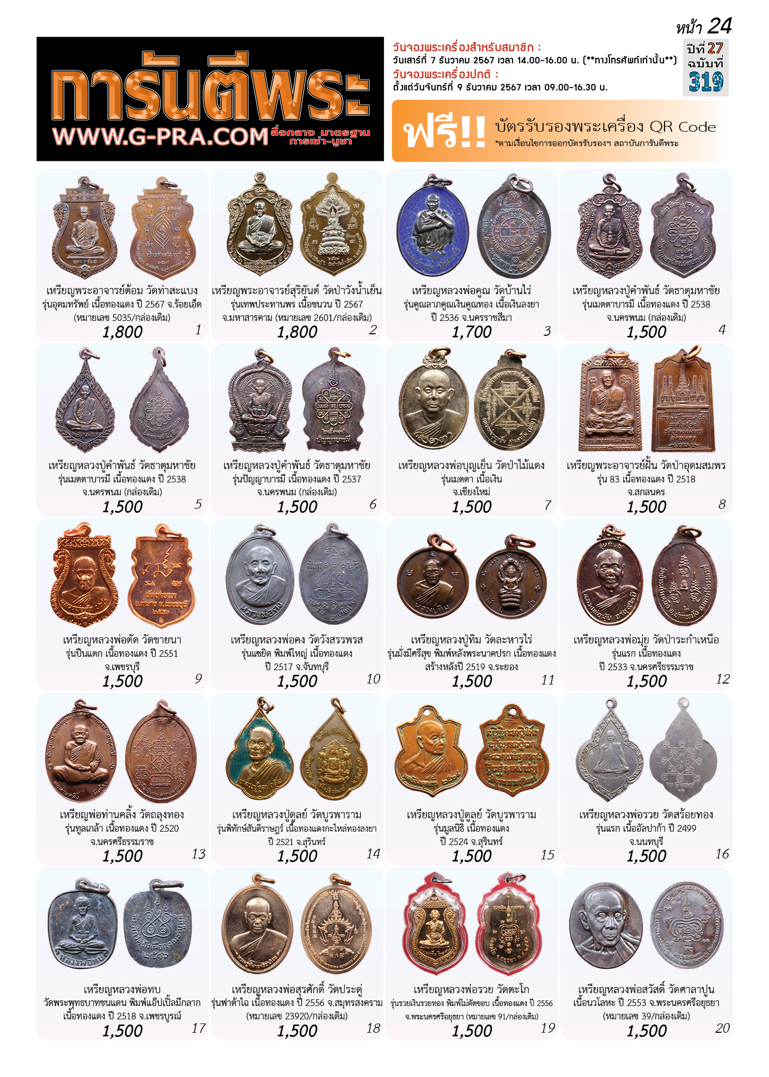 กรุณาเลือกเล่มนิตยสารการันตีพระ :
