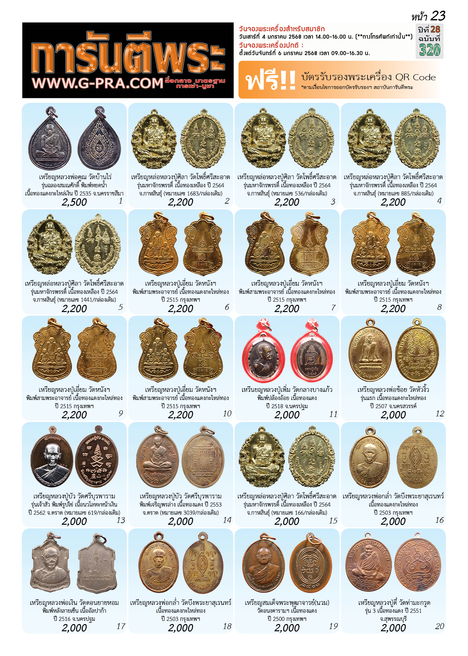 กรุณาเลือกเล่มนิตยสารการันตีพระ :