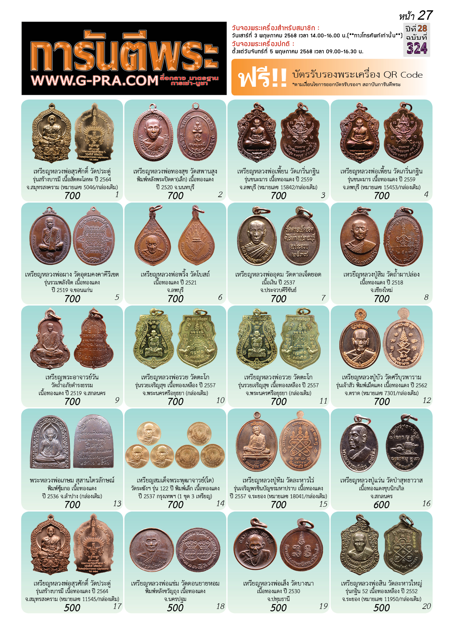 กรุณาเลือกเล่มนิตยสารการันตีพระ :