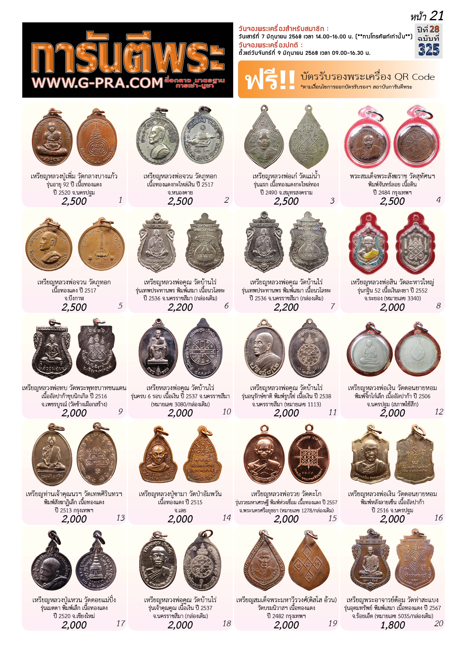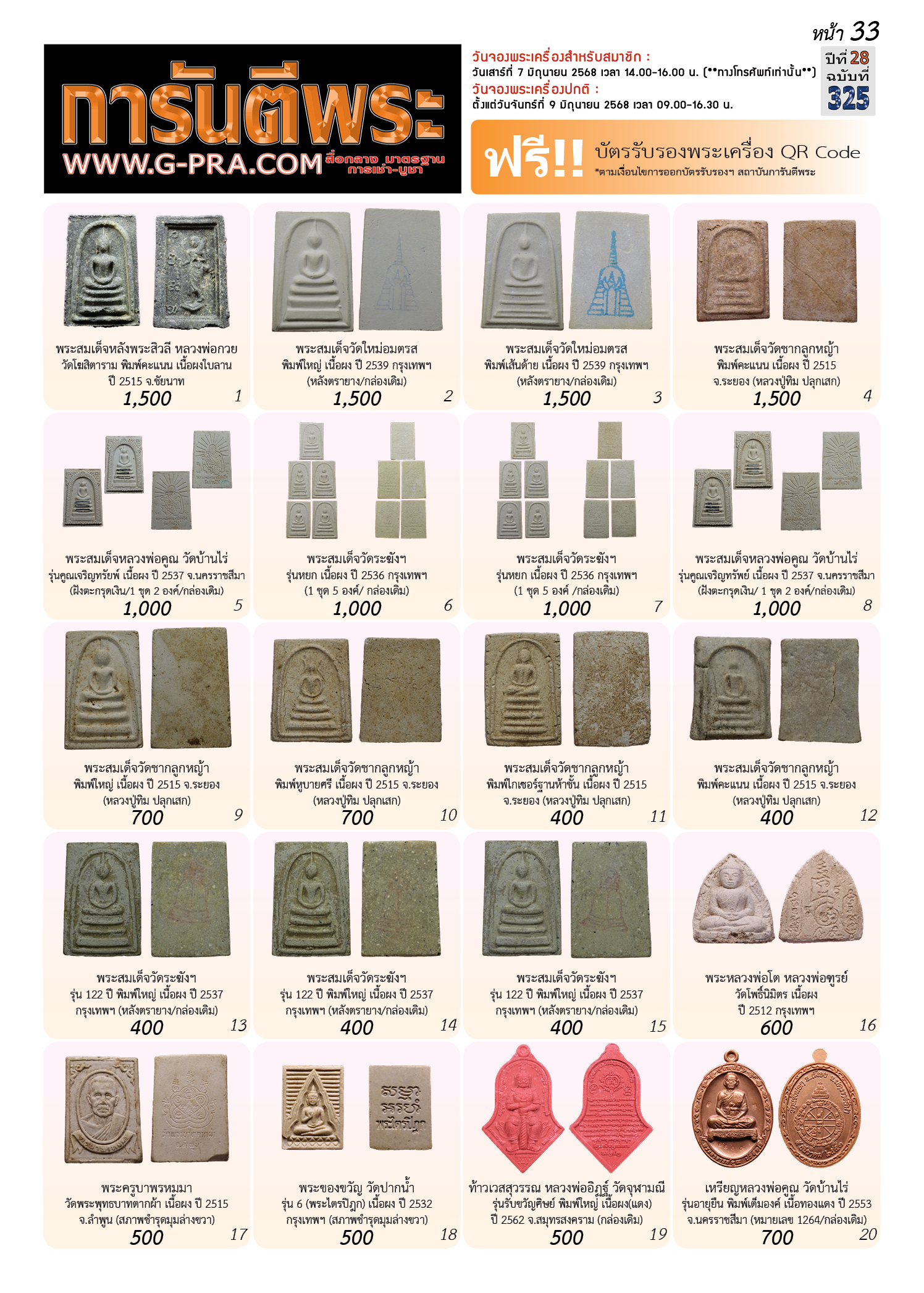 กรุณาเลือกเล่มนิตยสารการันตีพระ :