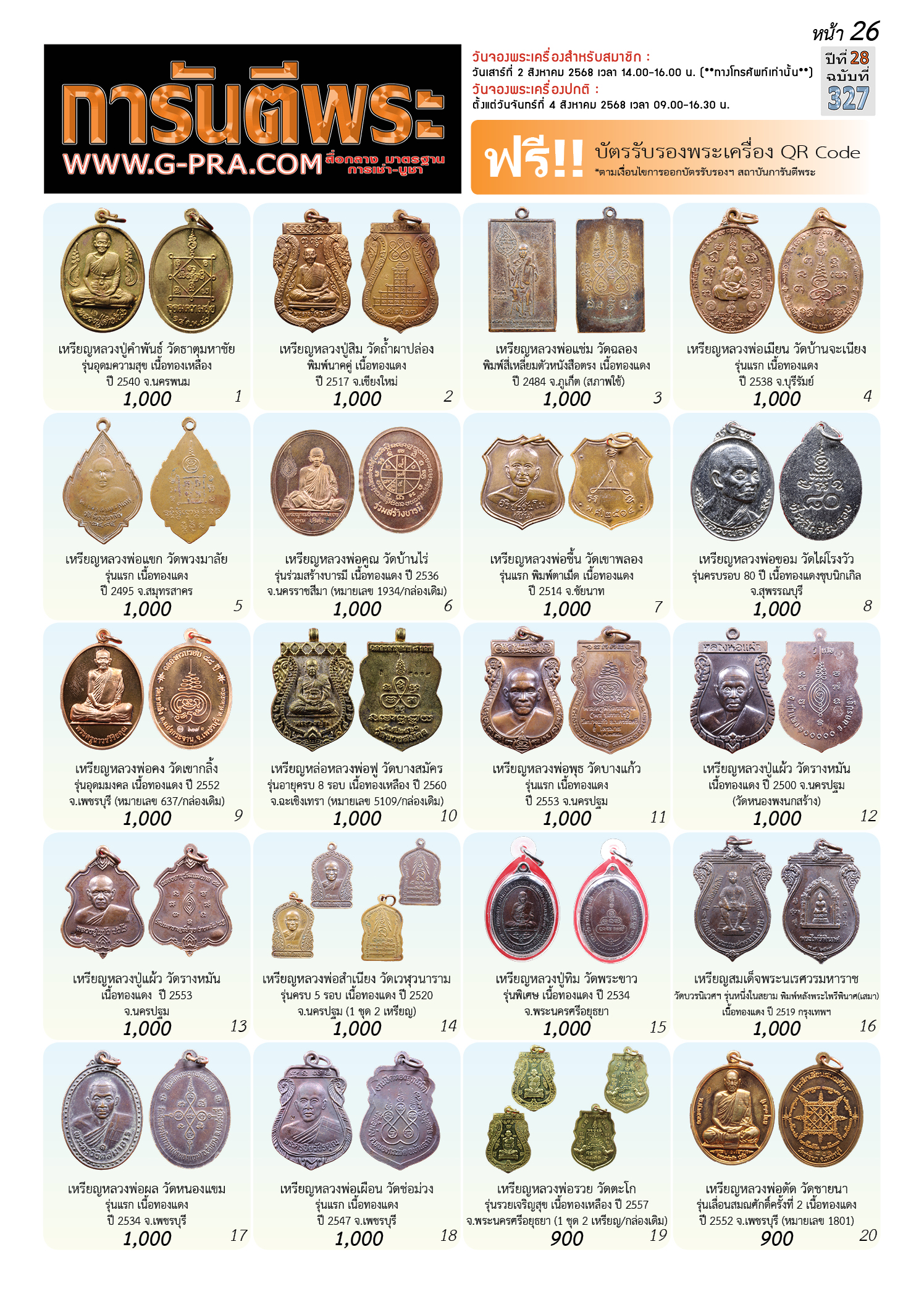 กรุณาเลือกเล่มนิตยสารการันตีพระ :