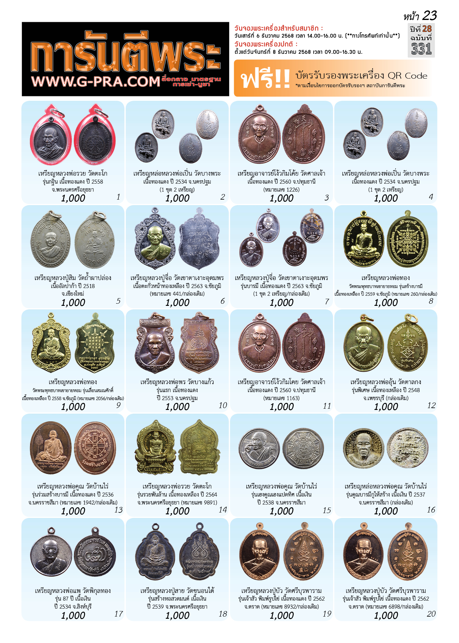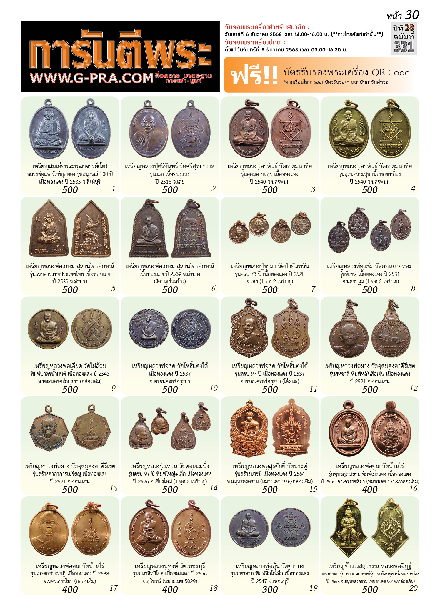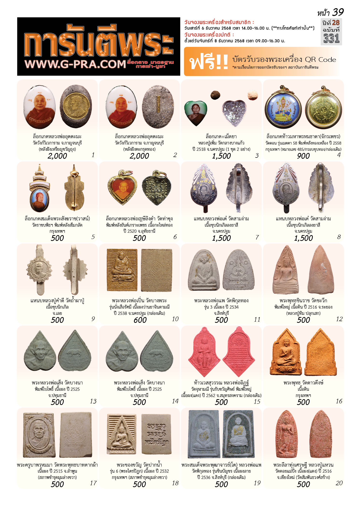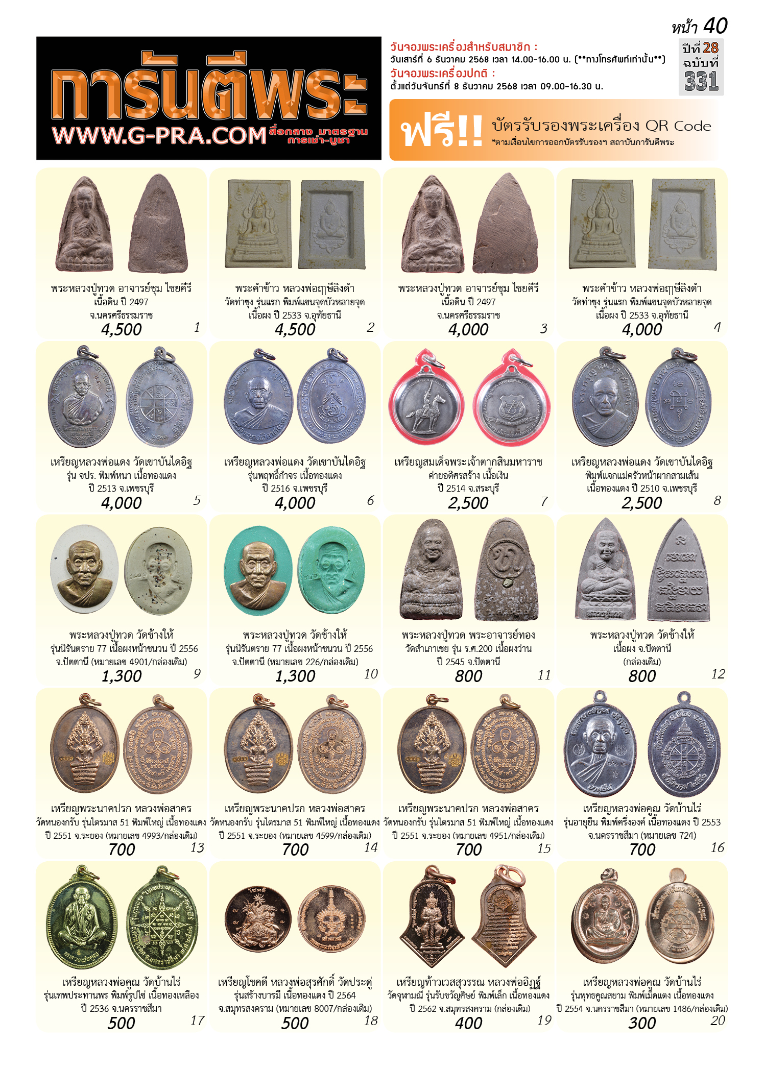 กรุณาเลือกเล่มนิตยสารการันตีพระ :