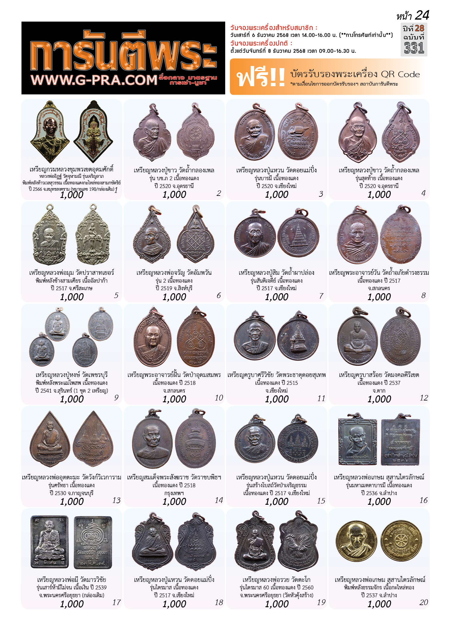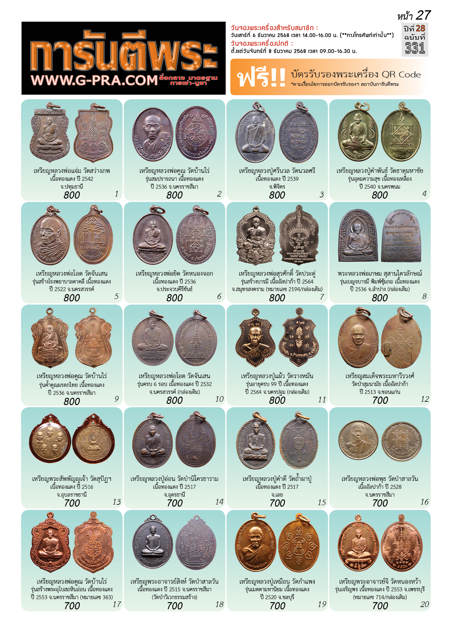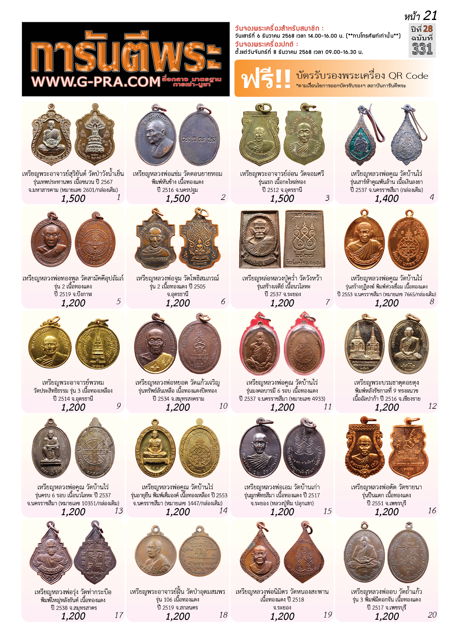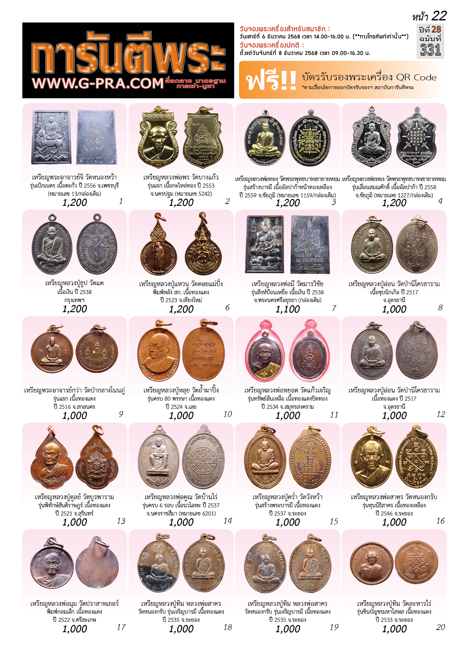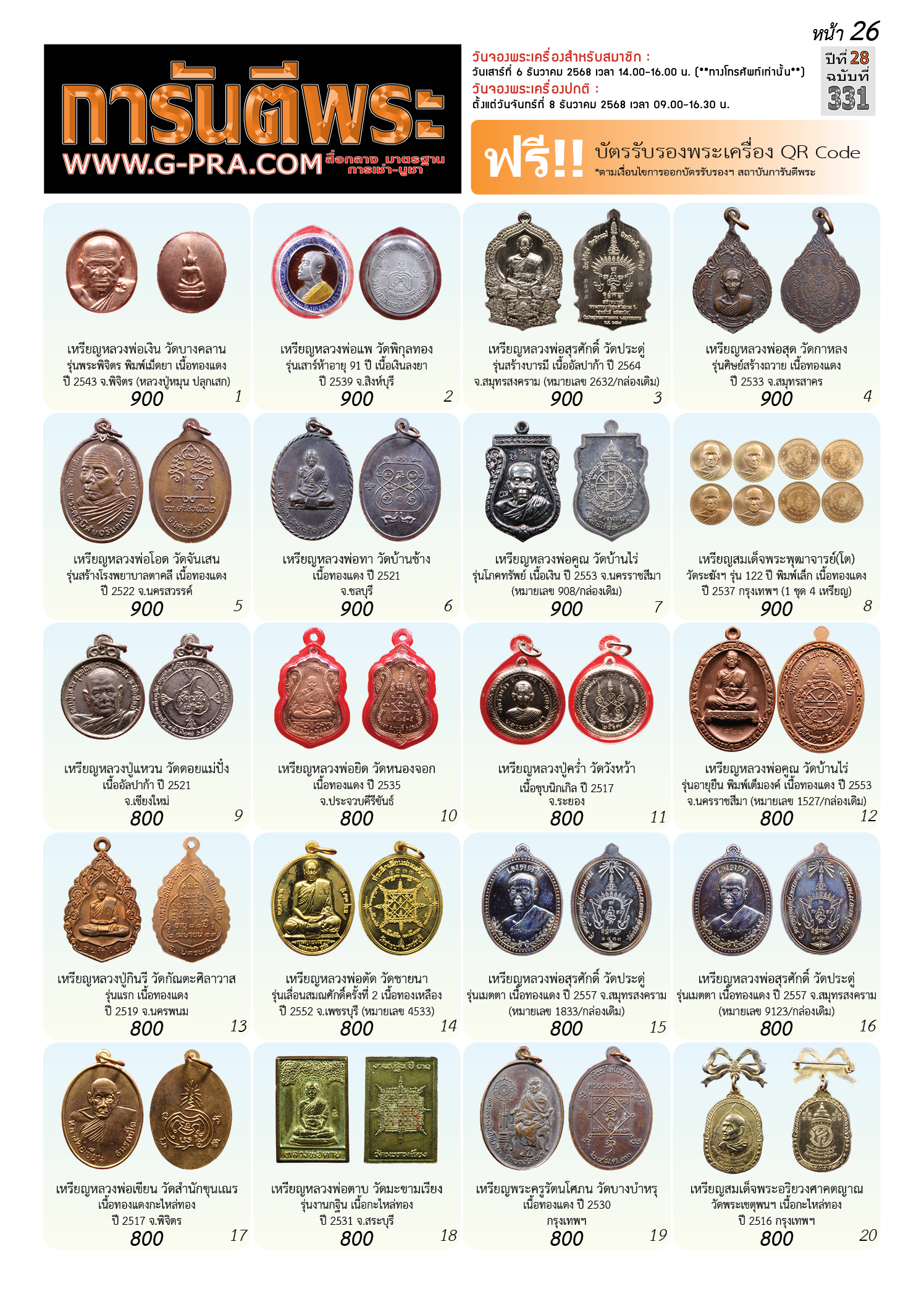 กรุณาเลือกเล่มนิตยสารการันตีพระ :